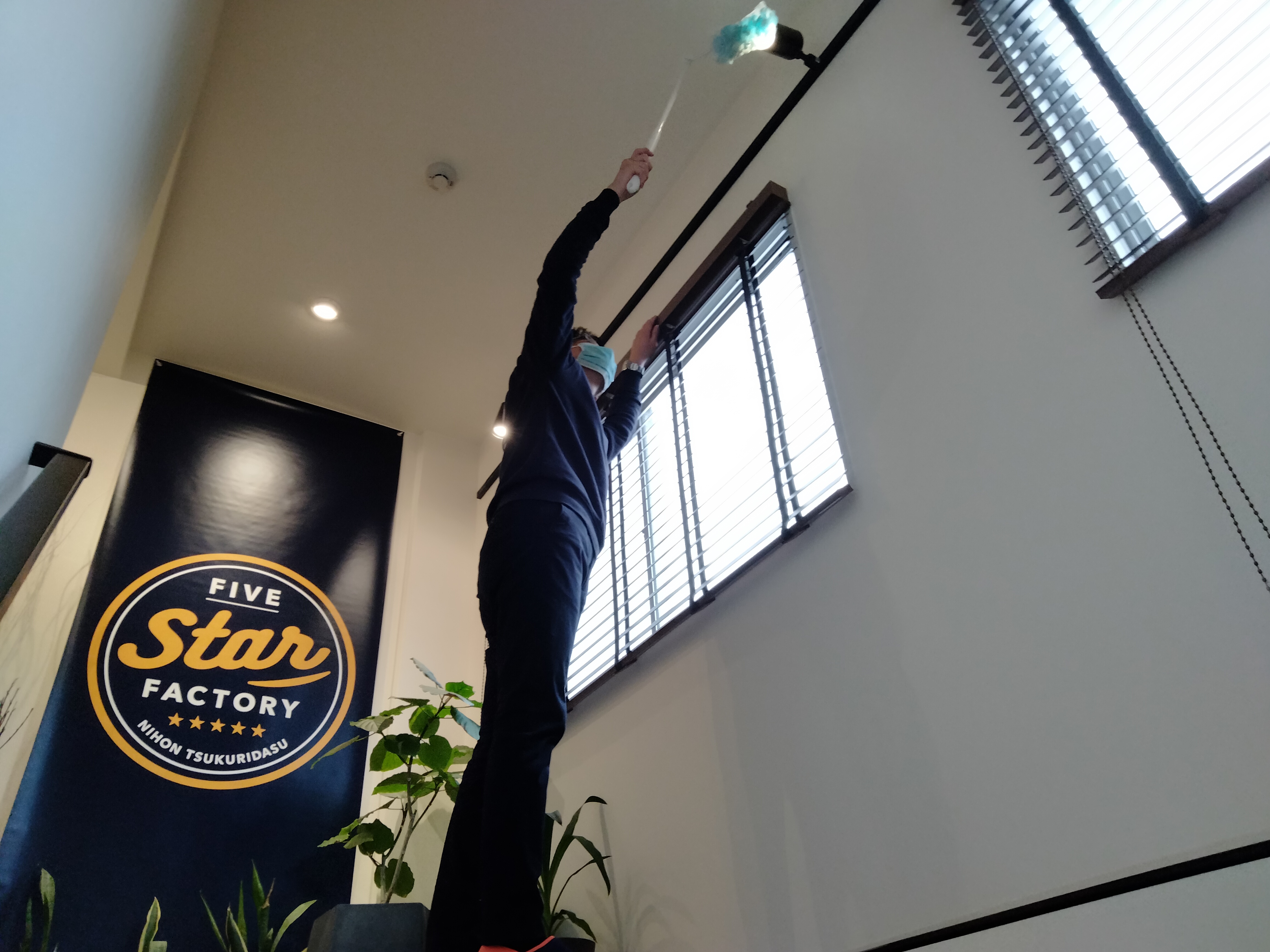 雑巾、箒、掃除機で社内の隅々までピッカピカに磨きあげると