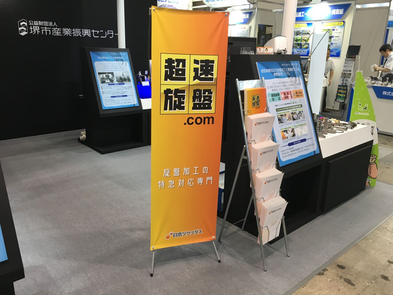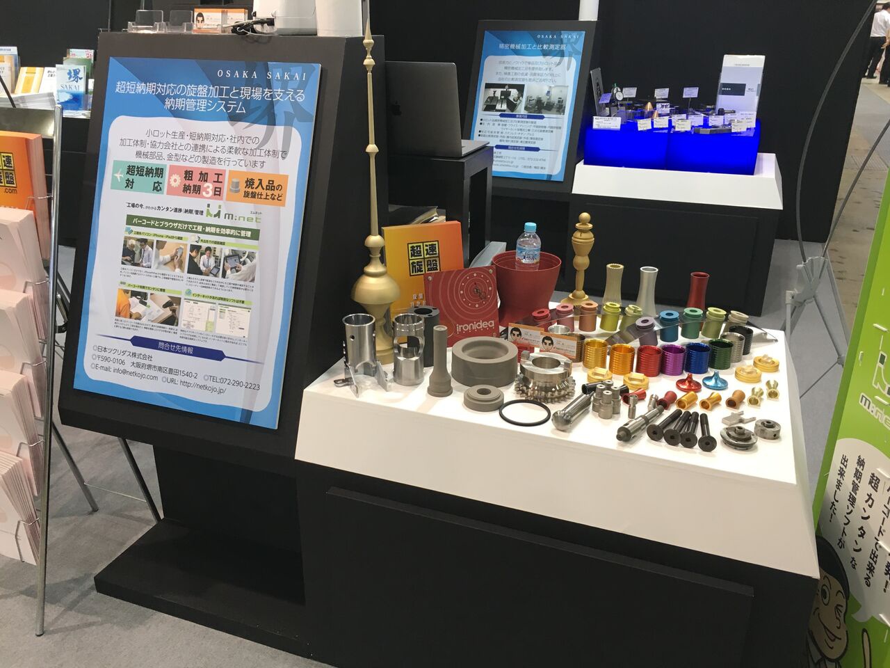 今回の技術展では、“超速旋盤”というロゴが書かれた高さ160cmほどのインパクトあるスタンドバナーを立てられました。大きなスタンドバナーが目に留まり、「超速旋盤って?」と声をかけてきてくださったお客様が多かったとのことです。