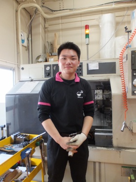 「お仕事には慣れましたか?」という質問に、「同業で働いていたとはいえ、機械の種類、加工するもののサイズ、強度などが違うので、初めから何でもできるというわけにはいきませんが、日本ツクリダスに来て半年が過ぎ、徐々に慣れてきました。」と答えてくれました。実際に、以前はφ20~30㎜のものを加工していたそうですが、現在はφ120~200㎜のものを多く扱うようになるなど、彼自身の守備範囲も大きく広がっているようです。頼もしい限りです。