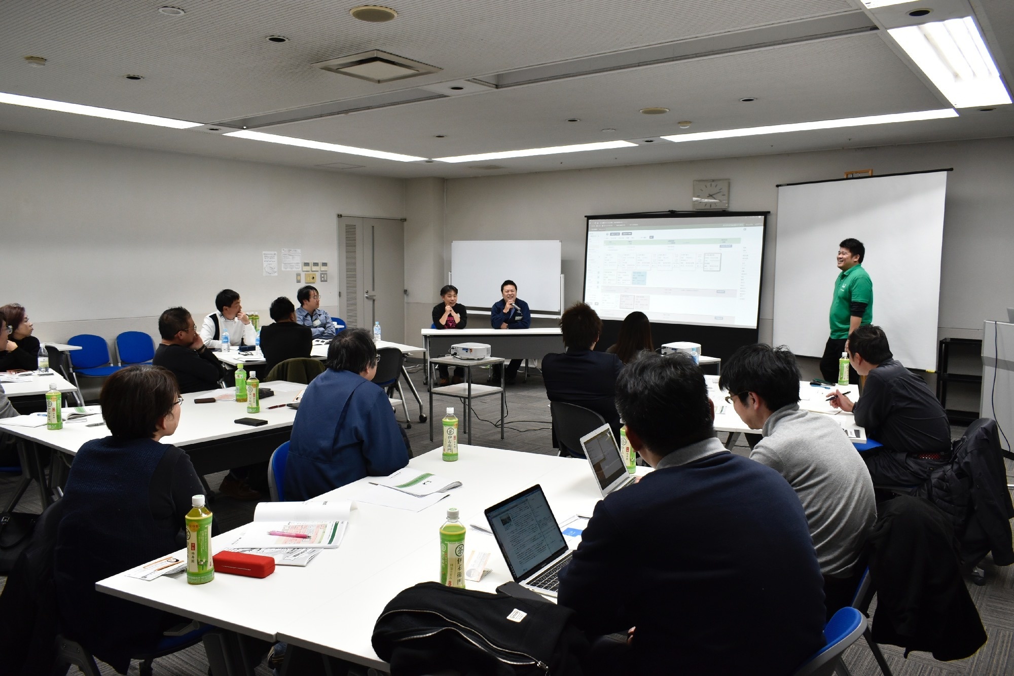 前にあるスクリーンを操作してくれているのは以前の記事で紹介させていただいた杉山さん、そして司会を行ってくれていた山田さんのタッグです。