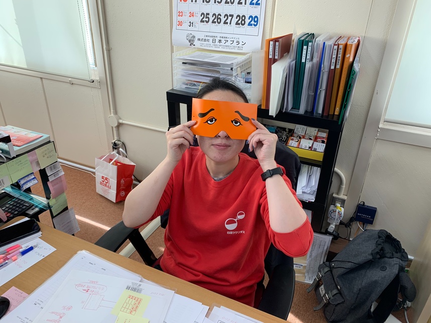 ゆうりとは、弊社に今年入社したホープで、主に加工と納期・工程管理ソフト「エムネット」の営業を行っています。おそらく社内で一番にぎやかで、女性社員の精神的支柱です。ちなみに、ゆうりの夫は1F製造部で金属加工の業務に従事しています。