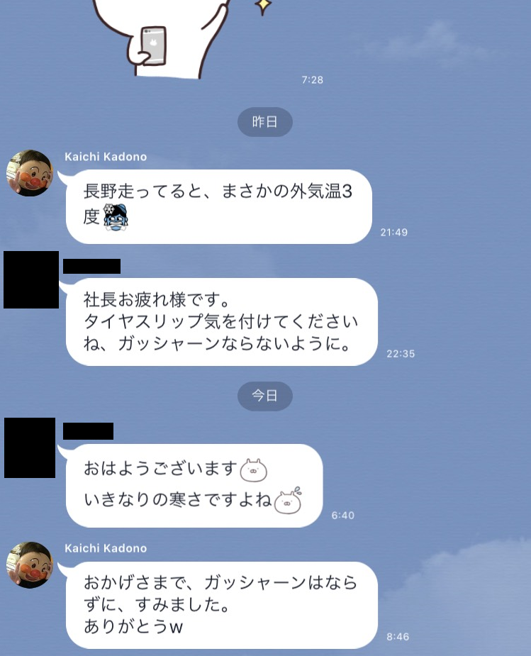 弊社代表の角野嘉一のことです。ちなみに、お子さんからも「かいち」と呼ばれているそうです。